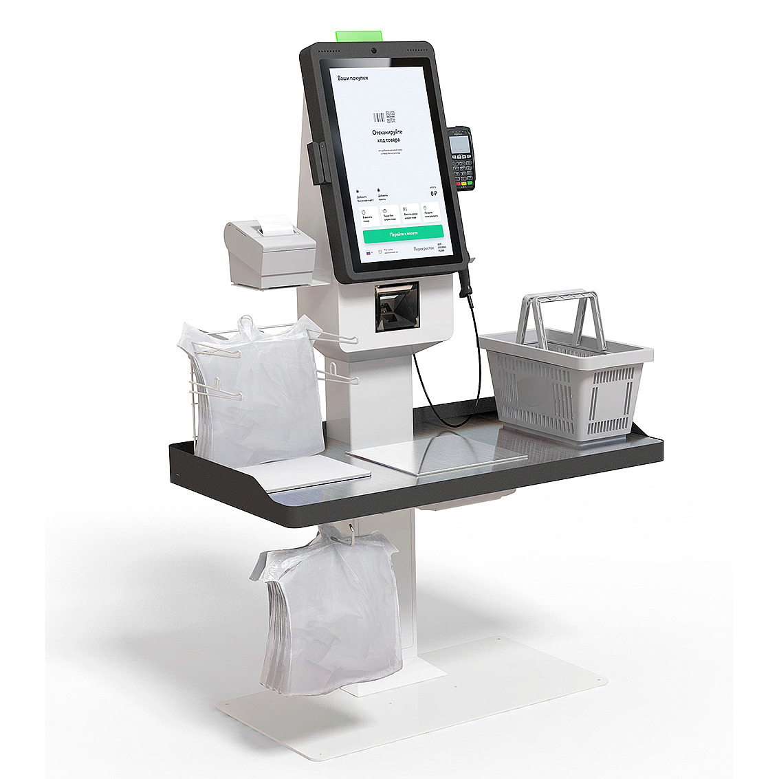 POScenter SCO-K210 Mod_V2 (21.5”, J4125, 8Gb, SSD128Gb, 2D сканер, Светофор, З цвета, полка для ПИН-пад, полка для ККТ, стойка модульная для покупок, 3 полки, держатель пакетов)